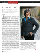 Mayer does know a thing or two about glass ceilings, including the metaphorical kind. She has bumped up against that invisible bar- rier to advancement: “It’s real, and it’s hard. It hurts.” But she holds no grudges. She knows the best glass cutter is a multi-tool composed of work ethic, professionalism, empathy, and authenticity.