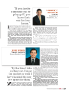 He thinks he’s also better for the fact that he understands the meaning of the word “no,” immediately backing off when a client needs a little space. “I’m typically not super- aggressive. If they tell me to call back on a certain day, I do. It goes back to knowing the person, the clubs he goes to, his hobbies, whether he has kids or likes sports. If you invite someone out to play golf, you get out there and have their ear for four hours.”
