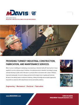 When it comes to building and maintaining a manufacturing or industrial facility, M. Davis has the in-house expertise to service a diverse array of industries, from pharmaceutical to industrial, technology to energy, and manufacturing to public works. We work in a schedule-driven environment with a team of 300 plus seasoned tradespeople. Our work is always performed at the highest level of quality and timeliness.