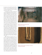 More challenging was finding evidence of a shroud, since the cloth is unlikely to have survived. Precise recording of any straight pins was one type of potential evidence for a shroud. But the excavations revealed an even better clue. Shrouds tightly wrapped the body including the feet. Some burials had the knees close together and the foot bones still in place, as they are in a living person. In other burials, the foot bones were scattered and the knees apart. The reason gradually became ap- parent. With bodies in a shroud, the legs and feet are tightly wrapped and held close together and the grave fill surrounds them. This fill holds the legs and feet together as the body decays, and the foot bones remain in rough anatomical position. But with burial in a coffin with no shroud, there was no support and the bones would collapse and move as decay progressed, with the knees usually