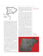 It was the moat of a previously unrecognized fortification and the curve was the start of a bas- tion. Armed with this knowledge, we examined other excavation units, dug test units and found a fort with three cannon emplacements. The moat yielded a range of artifacts including the first body armor found in Maryland, cannon balls, gun parts, a sword hilt, lead shot, gun flints, pottery, bones and other materials. There was no colo- nial round bottle glass in the fill, which became available after 1650. Instead, all the bottle glass was from flat sided case bottles. The tobacco pipes were mostly of Dutch origin and also dated to the mid-17th-century. We had found a fort and subsequent documentary research pointed to only one possible candidate — Pope’s Fort, named for the garrison commander Nathaniel Pope who occupied Calvert’s house.