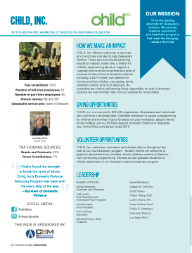 to break the cycle of abuse. Child, Inc.’s Domestic Violence Advocacy Program has been with me every step of the way. —Survivor of Domestic Violence