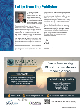 Welcome to Delaware Business Times’ seventh annual Giving Guide. We are pleased to present you with comprehensive profiles of local nonprofits that work throughout the year to make Delaware better and stronger.