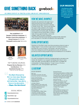 Give Back provides academic assistance, long-term coaching, and support services to students who have