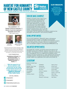 With the support of our donors, sponsors, and community, we can create a world where everyone has a safe, decent place to live. —Habitat for Humanity of New Castle County