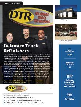 Delaware Truck Refinishers' area of expertise lies in nearly 30 years of body and collision repair for heavy-duty, medium-duty, and light-duty vehicles and fleets. Acquired by ARS Truck & Fleet Service in June 2019, the company has experienced tremendous growth. Delaware Truck Refinishers has tripled their workforce, quadrupled their revenue, and upgraded their work area from a 15k sq. ft. warehouse to a state-of-the-art facility with over 80k sq. ft. Their expert team of mechanics are knowledgeable, skilled, certified, and equipped to work on vehicles of all shapes and sizes, including vans, box trucks, buses, tractor-trailers, fire trucks, ambulances, RV's, and more. Operations is led by automotive and fleet industry executive Patrick Connell. A four-time member of Automotive Training Institute's Top 12 Automotive Shops in America, a Philadelphia100® 2021 award winner, as well as one of Delaware's Fastest 50 growing companies, their success is quickly becoming widely known. As a committed member of the community, they've donated time and money to Vet Fest, Wreaths Across America, Salvation of Sorrows, Sunday Breakfast Mission, and Eating at the King's Table. For a better, cleaner, faster solution, contact Delaware Truck Refinishers today.