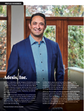 In 2016, Adesis was acquired by one of our biggest clients, Universal Display Corporation. This alliance has added both business and innovative impetus to our structure. Adesis is well positioned to drive the next generation of OLED technology while significantly expanding our chemistry work.