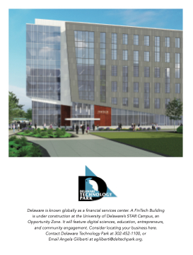 Delaware is known globally as a financial services center. A FinTech Building is under construction at the University of Delaware’s STAR Campus, an Opportunity Zone. It will feature digital sciences, education, entrepreneurs, and community engagement. Consider locating your business here. Contact Delaware Technology Park at 302-452-1100, or