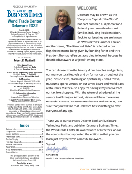 This special publication is sponsored by the World Trade Center Delaware and published by Delaware Business Times, 2022