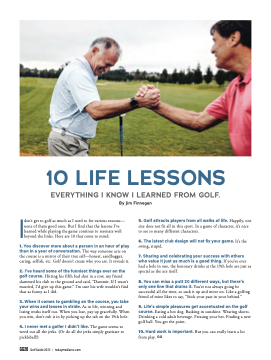 Idon’t get to golf as much as I used to for various reasons— none of them good ones. But I find that the lessons I’ve learned while playing the game continue to resonate well beyond the links. Here are 10 that come to mind: