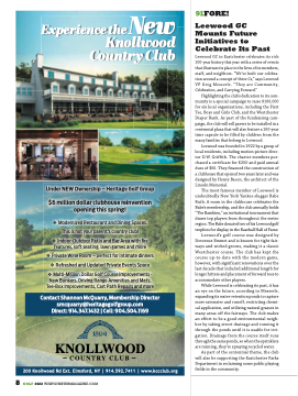 Leewood GC in Eastchester celebrates its rich 100-year history this year with a series of events that illustrate its place in the lives of its members, staff, and neighbors. “We’ve built our celebra- tion around a concept of three Cs,” says Leewood VP Greg Messerle. “They are Community, Celebration, and Carrying Forward.”