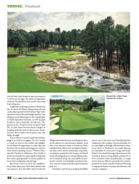 But there’s more to do in the neighbor- hood than chase your little white ball around the pasture. You shouldn’t miss Pinehurst