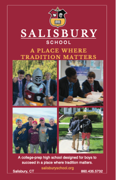SALISBURY SCHOOL A PLACE WHERE TRADITION MATTERS A college-prep high school designed for boys to succeed in a place where tradition matters. Salisbury, CT salisburyschool.org 860.435.5732