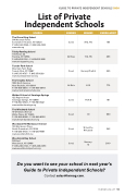 GUIDE TO PRIVATE INDEPENDENT SCHOOLS 2024 List of Private