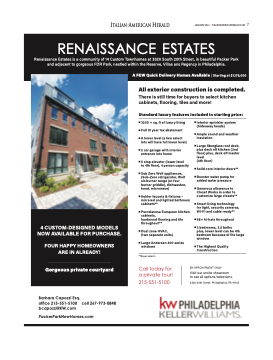 Renaissance Estates is a community of 14 Custom Townhomes at 3320 South 20th Street, in beautiful Packer Park and adjacent to gorgeous FDR Park, nestled within the Reserve, Villas ans Regency in Philadelphia.