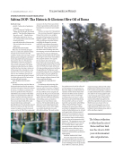 Before the rise of the Roman Empire there was an Italic tribe called the Sabines who date back to the 9th century B.C. withinthemodern-dayLazioregion. Tothe Sabines, power and longevity was defined by their beautiful fertile land featuring its characteristic olive trees. This land was called Sabina and its fruits brought the tribe centuries of prosperity. The Sabina civilization is older than the city of Rome and their land now has close to 3000 years of documented olive oil production. As an example of the territory’s endurance, the olive tree I am standing in front of in the photo is over 2000 years old and is situated in a Sabina olive grove full of ancient olive trees that still bear fruit today.