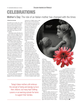 Today, in addition to individual family celebrations, many Italian cities host special events on Mother’s Day, including parades and concerts. It is also a time to focus on the importance of motherhood and a mother’s role in an evolving society. IAH