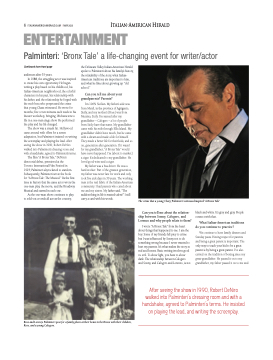 the Delaware Valley Italian-American Herald spoke to Palminteri about his family’s history, the relatability of the story, what Italian- American traditions are important to him, and what he likes about growing up “old school.”