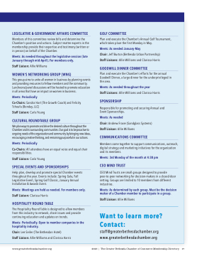 Help plan, develop and promote special Chamber events throughout the year. Events include: Spring Gala, Fall Legislative Event, Spring Golf Classic, January Annual Installation & Awards Event.