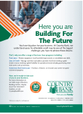 You have big plans for your business. At Country Bank, we understand access to affordable credit may be one of the biggest challenges you have to achieve those dreams.