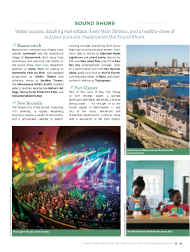 Water access, dazzling real estate, lively Main Streets, and a healthy dose of outdoor pursuits characterize the Sound Shore.