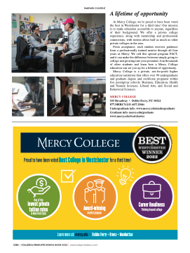 Mercy College is a private, not-for-profit higher education institution that offers over 90 undergraduate and graduate degree and certificate programs within five prestigious schools: Business, Education, Health and Natural Sciences, Liberal Arts, and Social and Behavioral Sciences.