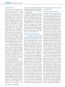 This was the least developed argument before settlement. But had the case pro- gressed in this direction, Twitter surely would have argued that there were no false statements on which to base a rescission remedy, and it may have argued that Tex- as’s law should not cover merger transac- tions involving public companies. But the most significant (and we believe decisive) response would have been about Delaware itself. Delaware is famously protective of its status as the nation’s producer and arbi- ter of corporate law. If Musk were able to sidestep a heavily negotiated merger agree- ment merely by invoking his presence in Texas during part of the negotiations,11 it would severely undermine Delaware’s dominance as a clear and predictable lode- star for merger agreement disputes (not