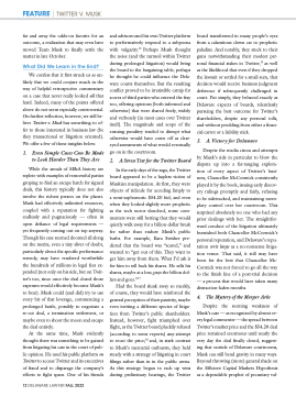 While the annals of M&A history are replete with examples of remorseful parties groping to find an escape hatch for signed deals, this history typically does not also involve the richest person on the planet. Musk had effectively unlimited resources, coupled with a reputation for fighting endlessly and pugnaciously — often in open defiance of legal requirements — yet frequently coming out on top anyway. Though his case seemed doomed all along on the merits, even a tiny sliver of doubt, particularly about the specific performance remedy, may have rendered worthwhile the hundreds of millions in legal fees ex- pended (not only on his side, but on Twit- ter’s too, since once the deal closed those expenses would effectively become Musk’s to bear). Musk could (and did) try to use every bit of that leverage, commencing a prolonged battle, possibly to negotiate a re-cut deal, a termination settlement, or maybe even to shoot the moon and escape the deal entirely.