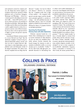 Delaware corporate boards face a di- lemma when considering how to respond to investor demands for ESG initiatives. On the one hand, the established share- holder primacy doctrine demands that boards manage the business in order to maximize stockholder wealth or, as recent decisions put it, stockholder “welfare.”30 On the other hand, although given con- siderable discretion in determining how