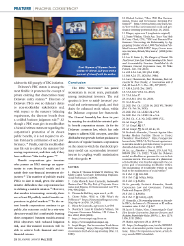 The ESG “movement” has gained momentum in recent years, particularly among institutional investors. The real question is how to satisfy investors’ pro- social and environmental goals, and their desire for enhanced stock values, within the Delaware corporate law framework. The General Assembly has done its part by enacting the stockholder-oriented pub- lic benefit corporation statute. As for the Delaware common law, which has only begun to address ESG concepts, cases like McRitchie may provide further guidance to directors of regular business corporations on the extent to which the shareholder pri- macy model can accommodate investors’ interest in coupling wealth maximization with other goals.