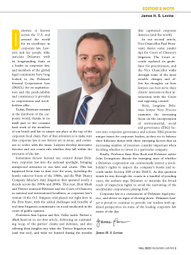 Corporate law is a cornerstone of Delaware legal prac- tice, and shows no signs of slowing down. Delaware Law- yer is proud to continue to provide our readers with up- dated perspectives on some of the leading corporate law issues of the day.