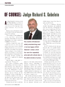 Gebelein shocked the state by de- feating Dick Wier in 1978 to become Attorney General. In that role, he drove a strong settlement, lauded by his pre- decessor, in a case that Wier had brought against the Nemours Foundation to enforce Alfred I. du Pont’s charitable trust. On Gov. Pete du Pont’s sentenc- ing reform commission, Gebelein and Dave Swayze developed the concept of multi-level sentencing, so not every guilty defendant would go to prison.