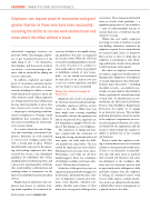 In addition, employers can request proof of vaccination and grant greater liberties to those who have been vac- cinated, including the ability to resume work-related travel and move about the office without a mask. Many employers are shying away from these distinctions because they feel punitive to those who have chosen not to receive the vaccine — the prospect of relegating a small mi- nority of employees to wearing a mask indefinitely feels somewhat unjust. It also creates something of a visual mark- er for vaccine refusal.