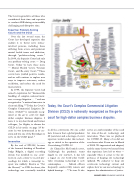 In 1999, the Superior Court had earned a reputation for “business-like handling of complex, national insur- ance coverage litigation . . .” and was recognized as “a national innovator in electronic filing.”15 Today, the Court’s Complex Commercial Litigation Di- vision (CCLD)16 is nationally recog- nized as the go-to court for high- dollar complex business disputes. I leave it to my dear friend and former colleague, Joe Slights, to discuss the CCLD in his article on page 18 be- cause he was instrumental in its cre- ation and was one of the first judges to serve on the CCLD panel.17