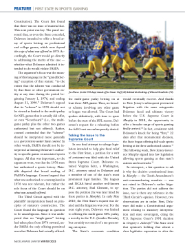 Constitution). The Court first found that there was no issue of material fact. This next point was key. The panel rea- soned that, as even the State conceded, Delaware intended to offer a broad ar- ray of sports betting on professional and college games, which were beyond the scope of what was offered in 1976. Ac- cordingly, the Court would go directly to addressing the merits of the case — whether what Delaware admitted it in- tended to do would violate PASPA.