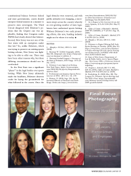 constitutional balance between federal and state governments, courts should interpret federal statutes in a manner to preserve state sovereignty. The Third Circuit disagreed with Delaware’s po- sition that the Gregory case was ap- plicable, finding that Congress under PAPSA had clearly altered that balance. Second, New Jersey was not one of the four states with an exemption under that law.14 So, unlike Delaware, which was trying to preserve an existing sports betting scheme, New Jersey was fight- ing to be able to offer one. There may have been other reasons why, but these differing circumstances should not be overlooked.
