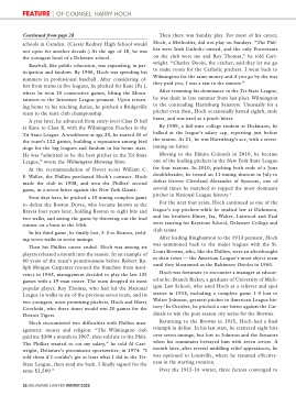Hoch encountered two difficulties with Phillies man- agement: money and religion. “The Wilmington club paid me $300 a month in 1907, then sold me to the Phils. The Phillies wanted to cut my salary,” he told Al Cart- wright, Delaware’s preeminent sportswriter, in 1974. “I told them if I couldn’t get at least what I did in the Tri- State League, then send me back. I finally signed for the same $1,500.”