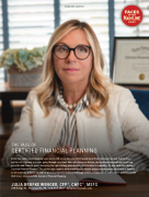 will run out of money, or people going through transitions like a job change or divorce, who need professional help to set new priorities and financial goals. Designing the right strategy while building relationships is rewarding. It’s why Julia loves being a Certified Financial Planner®. The perfect plan requires understanding each client’s unique circumstances, which are as dynamic as the markets. Julia has shared her planning expertise nationally through speaking engagements and has been published in the Wall Street Journal and the Journal of Financial Planning.