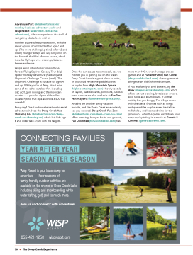 Adventure Park (dcladventures.com/ monkey-business-adventure-park) and Wisp Resort (wispresort.com/aerial- adventures), kids can experience the thrill of navigating obstacles in mid-air.