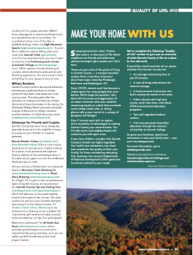 of Life” section to give you an overview of what Garrett County is like as a place to live and work.