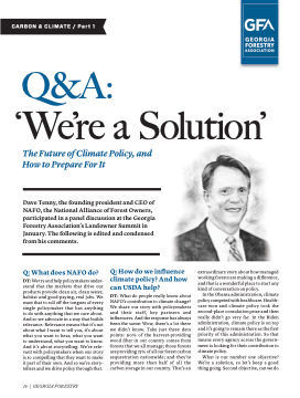 Dave Tenny, the founding president and CEO of NAFO, the National Alliance of Forest Owners, participated in a panel discussion at the Georgia Forestry Association’s Landowner Summit in January. The following is edited and condensed from his comments.