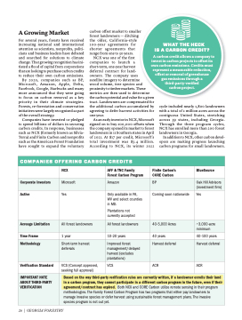For several years, forests have received increasing national and international attention as scientists, nonprofits, politi- cians and business leaders have debated and searched for solutions to climate change. That growing recognition has ini- tiated a flood of capital from corporations that are looking to purchase carbon credits to reduce their own carbon emissions.