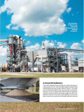 “One of the things that makes Georgia very logistically [import- ant] is just port access,” said Christopher Fagan, manufacturing and distribution practice leader at Moore Colson. “You’ve got your woody biomass within a very close proximity to the [Savan- nah] port. So a lot of these pellet mills in South Georgia have rail spurs and these pellets are going straight onto the train, directly to the port. It becomes cost prohibitive if you have to ship too much on rail, and most of the pellet mills [are] centered
