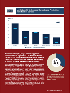 According to Wood Resources Interna- tional, a reduction in the annual allowable cut in British Columbia has reduced production volumes in that region by over a third in just five years.