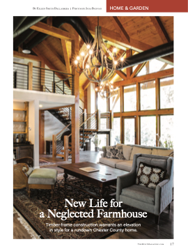 By EilEEn Smith DallaBriDa | PhotoS By Jana Bannan New Life for a Neglected Farmhouse Timber-frame construction warrants an elevation in style for a rundown Chester County home. TheHuntMagazine.com 17 HOME & GARDEN