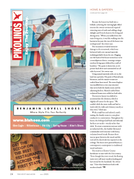 The excavation revealed extensive damage to the stonework, which was bolstered with new natural materials indistinguishable from the rest. Digging out the back of the house turned out to be a serendipitous choice, creating a unique outdoor living space defined by a wall of boulders. “The patio is down low, so it’s private back there and surrounded on all sides by stone,” the owner says.