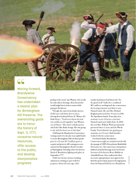 a battlefield tour. Once authorized, three successive appropriations were approved to fund the preservation projects through grants from the National Park Service. Brandywine