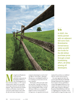 Moving forward, Brandywine Conservancy has undertaken a master plan for Birmingham Hill Preserve. The overarching goals are to honor the history of Sept. 11, 1777, conserve natural resources, offer access to the public, and develop interpretative and educational programs. “It gave my mother peace of mind to take care of the farm, to know that the conservancy would continue to do so when she died, and to know she’d given back to a