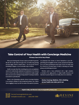 Based in the Philadelphia suburbs, Devine Concierge Medicine is an exclusive offering of truly exceptional primary care. Rather than struggling to keep up with the needs of thousands of patients,