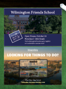 Wilmington Friends School Open House, October 24 Preschool -12th Grade Visit wilmingtonfriends.org to register or to schedule a custom tour! LOOKING FOR THINGS TO DO? Plan Your Day Out at Calendar.delawaretoday.com